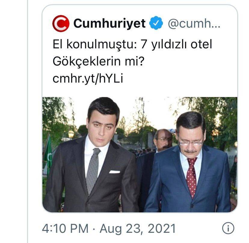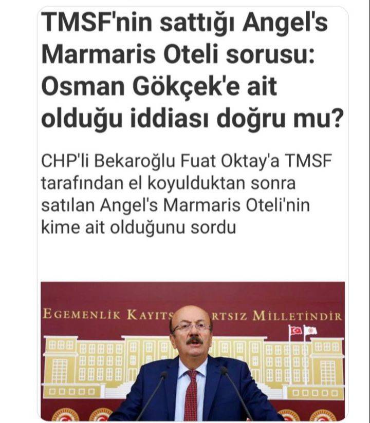 Adı 'Angel's Marmaris Hotel' olan otelin TMSF tarafından Büyükşehir Belediyesinin eski Başkanı Melih Gökçek’in oğlu Osman Gökçek’e satıldığını iddia etmiş, iddialarla ilgili Cumhurbaşkanı Yardımcısı Fuat Oktay’ın yanıtlaması istemiyle soru önergesi vermişti.