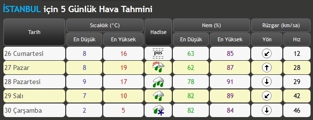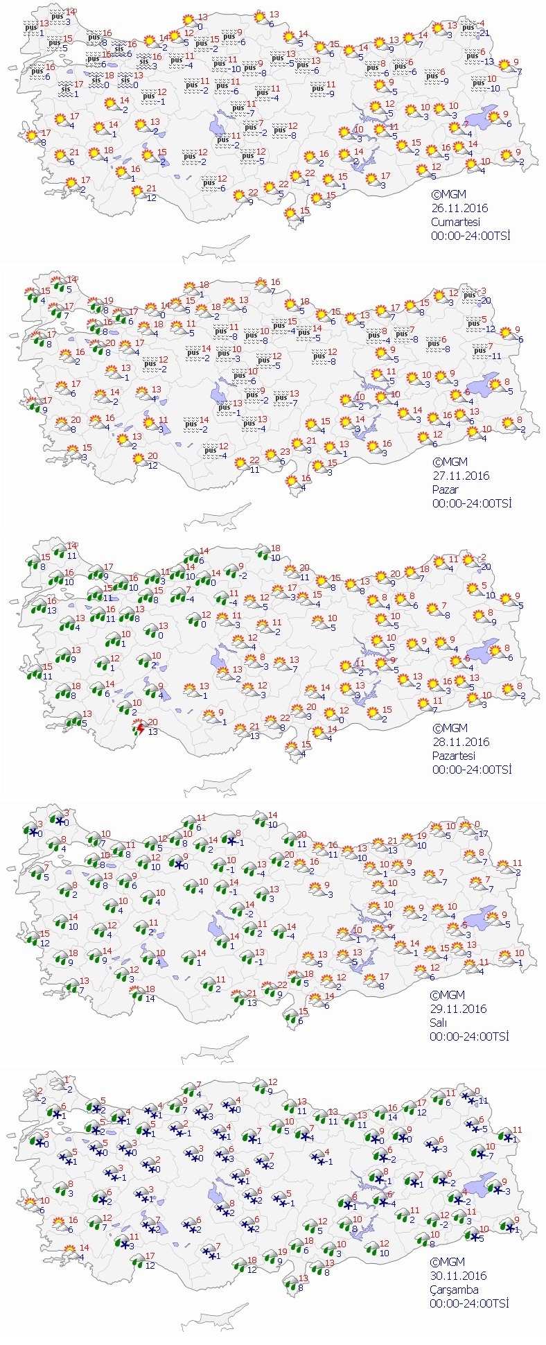 Güney Marmara illerinde hafta sonunda hafta sonunda 18 dereceye kadar çıkacak bölgede hava sıcaklıklarının, salı gününden itibaren 5 ila 10 derece arasında düşeceği tahmin ediliyor. Çarşamba günü İstanbul ve yurdun büyük bölümünde karla karışık yağmur bekleniyor.