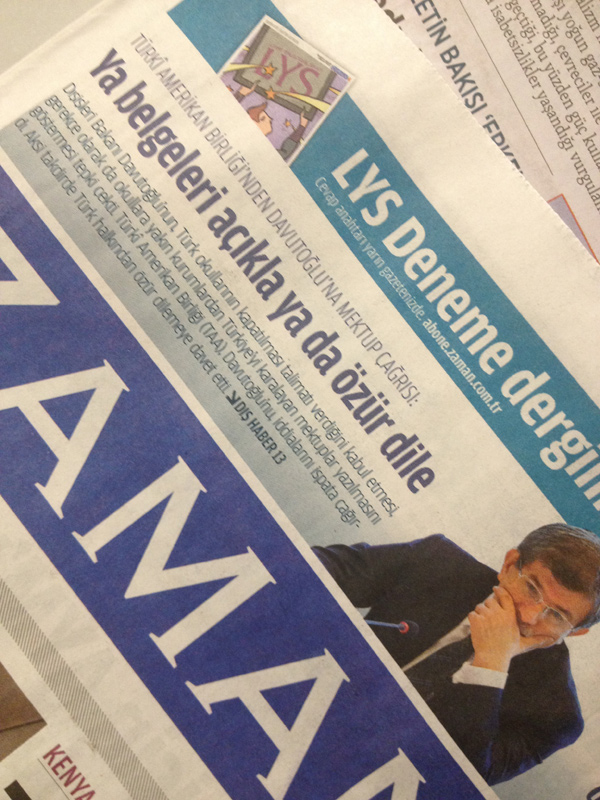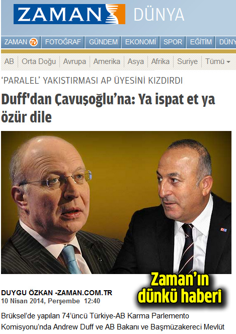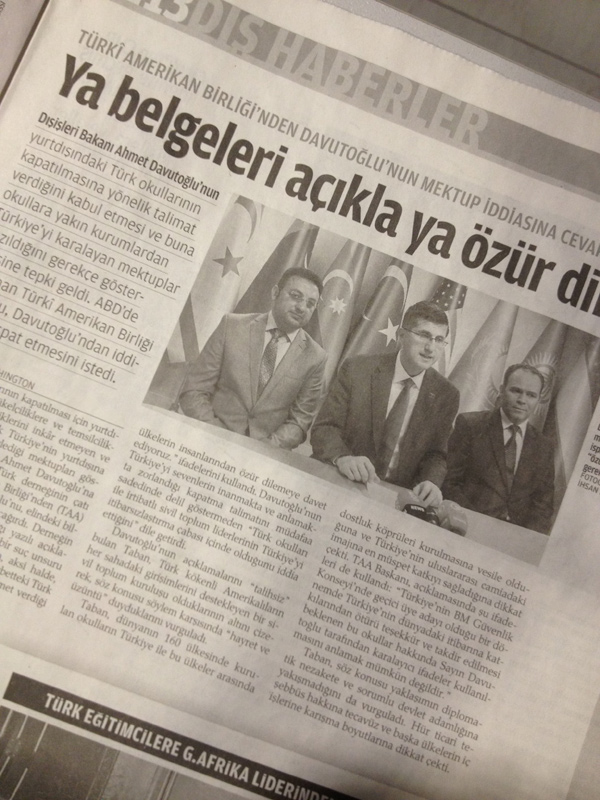Davutoğlu'nun, "Kendi vatanlarını dışarıda bulundukları ülkelere şikayet eden metuplar yazıyorlar" sözlerine tepki gösteren Zaman ve Bugün gazeteleri, verdikleri haberlerde de, 'Ya ispat et, ya da özür dile' başlığını kullanmışlardı. Cemaatin gazeteleri, bu tarz yazılmış bir mektubun olmadığını öne sürmüşlerdi.