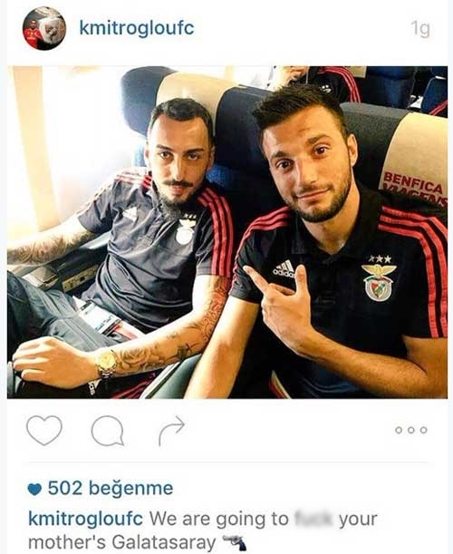 Galatasaray'ın bu akşam Benfica ile oynayacağı Şampiyonlar Ligi maçı öncesi Yunan forvet oyuncusu Kostas Mitroglou sosyal medya hesabından ağır küfür etti.