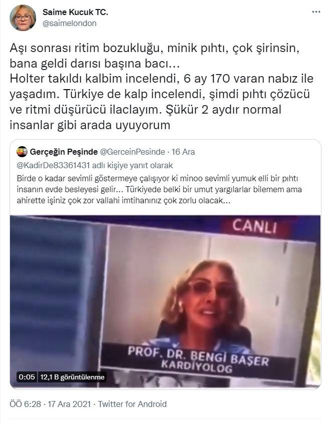 Vatandaşlar, Bengi Başer'in bu açıklamasına sosyal medya üzerinden tepki gösterdi. Vatandaşlar, o minik pıhtılar nedeniyle birçok insanın felç kaldığını ifade etti.