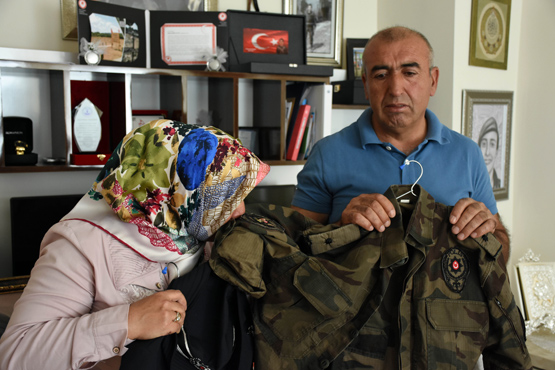 Fetullahçı Terör Örgütü'nün (FETÖ) 15 Temmuz'daki darbe girişimi sırasında Ankara Gölbaşı Özel Harekat Daire Başkanlığına düzenlenen saldırıda şehit olan özel harekat komiser yardımcısı Kübra Doğanay'ın anne ve babası, şehit ailesi olmanın gururunu yaşarken kızlarının geride kalan fotoğraf ve üniformaları ile avunuyor.