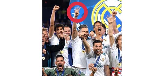 Real Madrid forması giyen Fransız Müslüman futbolcu Karim Benzema, Rabia işaretiyle geceye vurdu.
