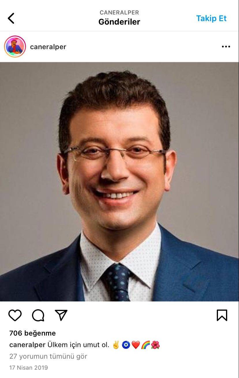 Caner Alper'in seçildiği günden bu yana skandallarıyla gündemden düşmeyen CHP'li İBB Başkanı Ekrem İmamoğlu'na yaptığı paylaşımlarla destek verdiği de görüldü. Bir paylaşımında İmamoğlu'nun fotoğrafına yer veren Alper, "Ülkem için umut ol" notunu düştü.