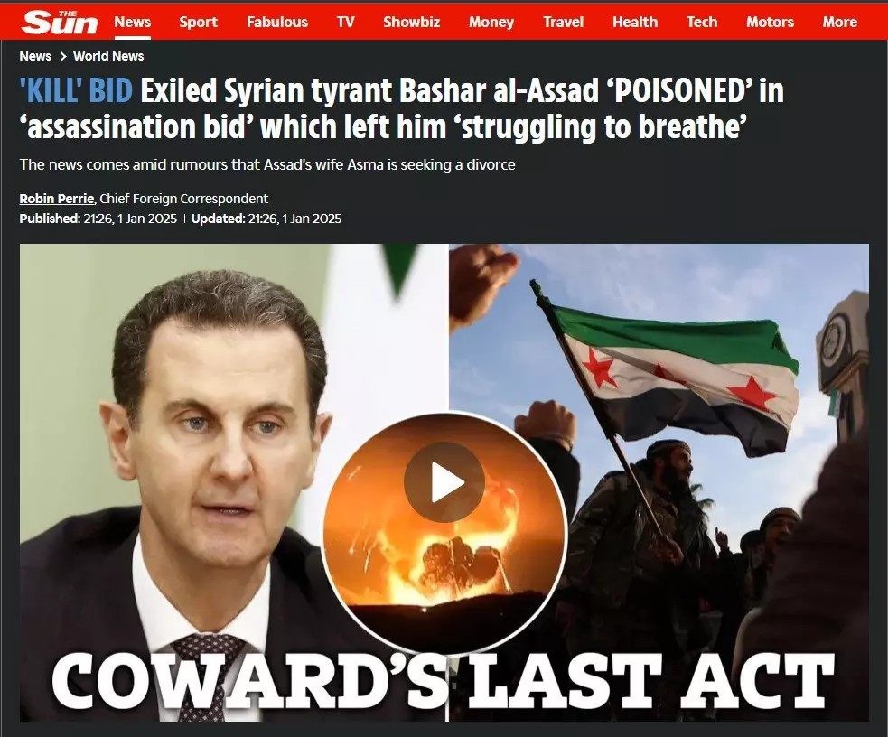 İngiliz The Sun gazetesinin haberine göre, sürgündeki eski Suriye lideri Beşar Esed, nefes almakta güçlük çekmesine neden olan bir suikast girişimine uğradı. Esed'in zehirlenerek hedef alındığı ve olayın ardından sağlık durumu hakkında endişeler olduğu belirtiliyor.