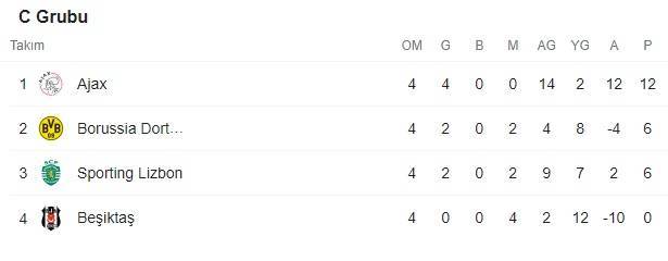 C Grubu'ndaki 4 karşılaşmayı da kazanarak 12 puana ulaşan ve gruptan çıkmayı garantileyen Ajax ise lider durumda bulunuyor.