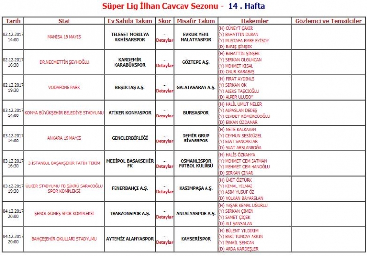Süper Lig'in 14. haftasında oynanacak olan Beşiktaş - Galatasaray derbi maçını hakem Fırat Aydınus yönetecek.