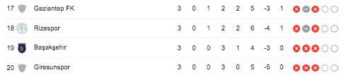 Süper Lig 3. hafta maçları sonrası puan durumu şöyle: