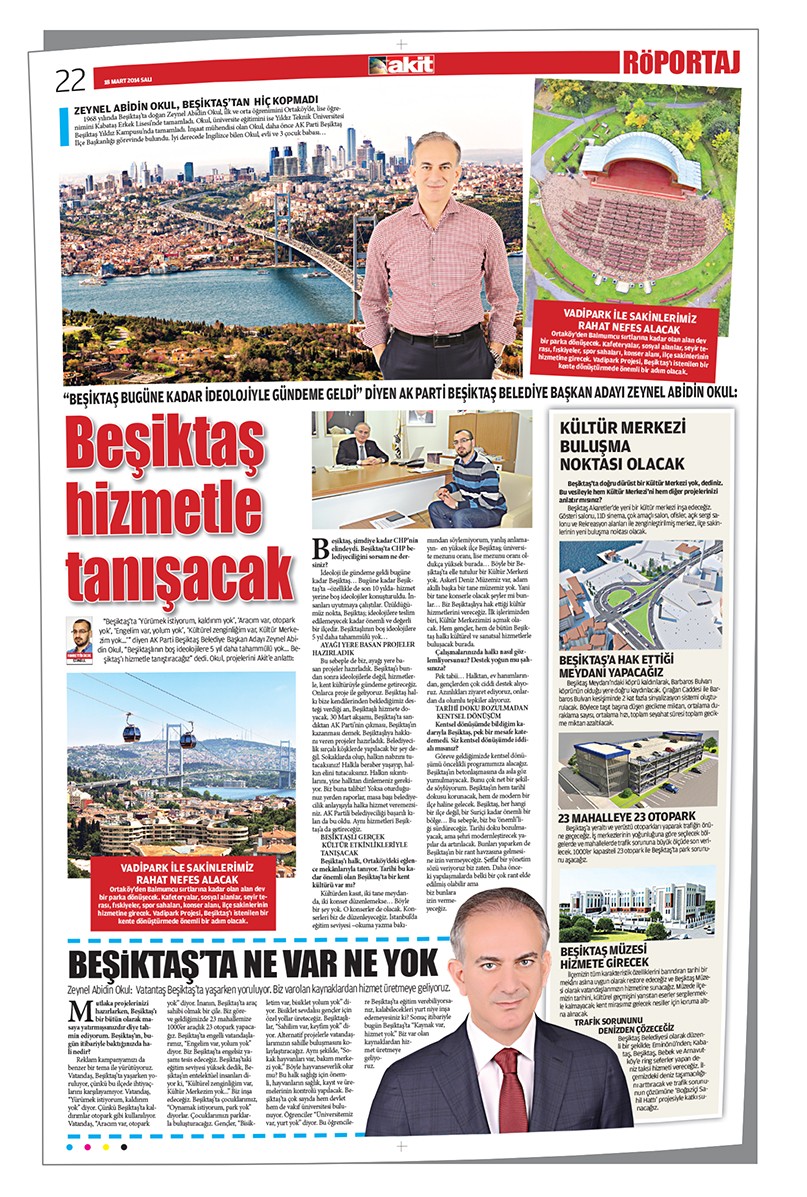 “Beşiktaş’ta ‘Yürümek istiyorum, kaldırım yok’, ‘Aracım var, otopark yok’, ‘Engelim var, yolum yok’, ‘Kültürel zenginliğim var, Kültür Merkezim yok...’” diyen AK Parti Beşiktaş Belediye Başkan Adayı Zeynel Abidin Okul, “Beşiktaşlının boş ideolojilere 5 yıl daha tahammülü yok… Beşiktaş’ı hizmetle tanıştıracağız” dedi. Okul, projelerini Akit’e anlattı: