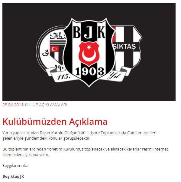 BEŞİKTAŞ RESMİ SİTESİNDEN AÇIKLAMA