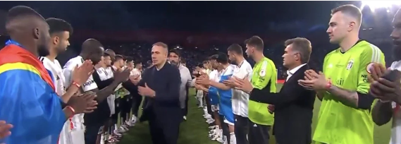 Bu sırada ise bordo-mavili futbolcular ve siyah-beyazlı oyuncular birbirlerini alkışladı. Ortaya çıkan bu anlar sosyal medyada gündem oldu.