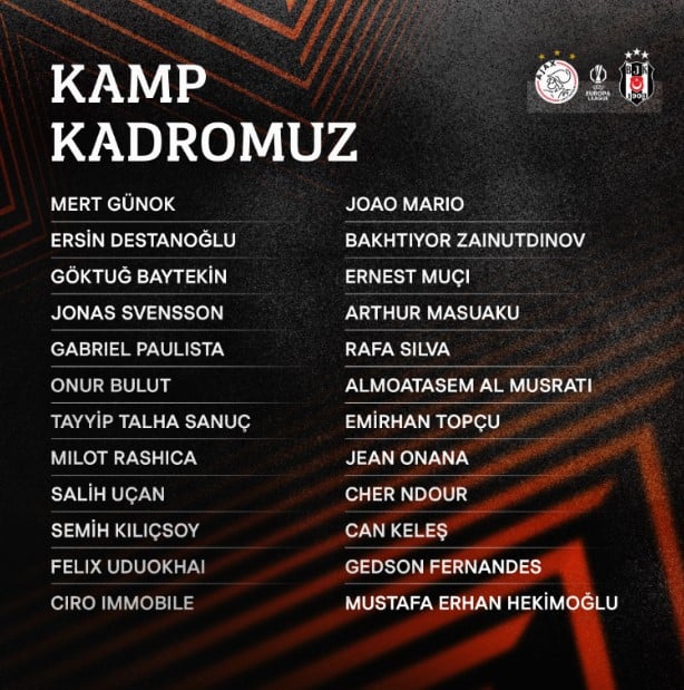 İşte Beşiktaş’ın Ajax maçı kadrosu: