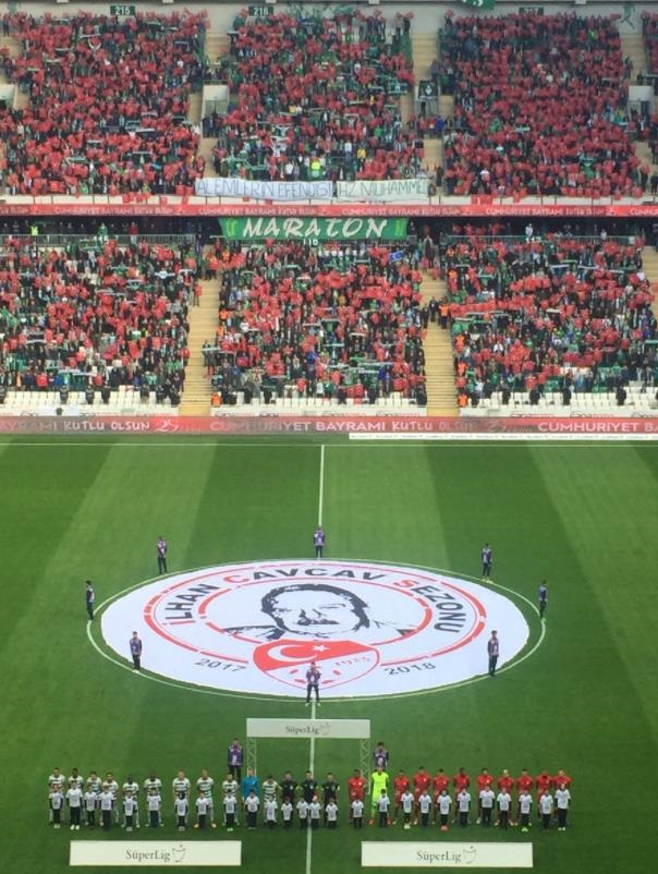 Antalyaspor'u konuk eden yeşil-beyazlılarda taraftarlar, "Alemlerin Efendisi Hz. Muhammed" ifadelerinin yer aldığı pankartı, maç öncesi tribüne astı.