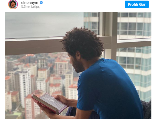 Mısırlı futbolcu, Kur'an-ı Kerim okurken çekilmiş bir fotoğrafını, "Tüm problemlerin, endişelerin ve acıların çözümü, af dilemek ve iyimser olmak. Üzülmeyin, Allah bizim yanımızda" notuyla Instagram hesabından paylaştı.