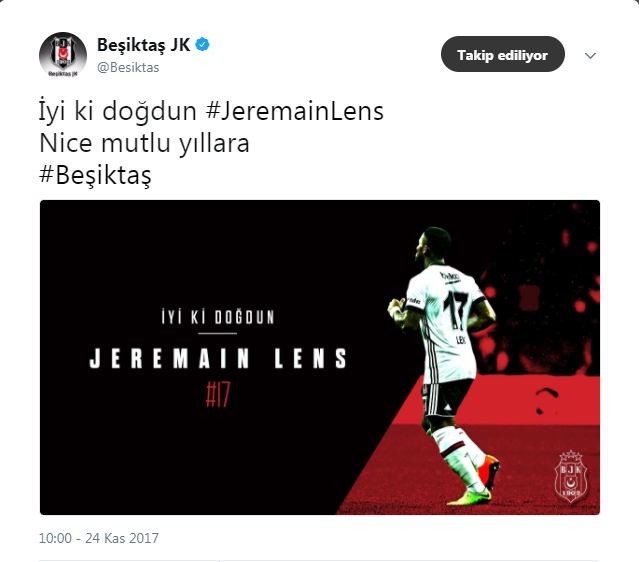 Geçen sezon Fenerbahçe'de forma giydikten sonra sezon başı Sunderland'den kiralanan Lens, Beşiktaş'ta gösterdiği performansla eleştiliriliyor. Skorer'de yer alan habere göre, Siyah-Beyazlı ekibin resmi Twitter hesabı Hollandalı futbolcunun doğum gününü kutlayan bir paylaşımda bulunurken, tweete Beşiktaş taraftarından ilginç tepkiler geldi.