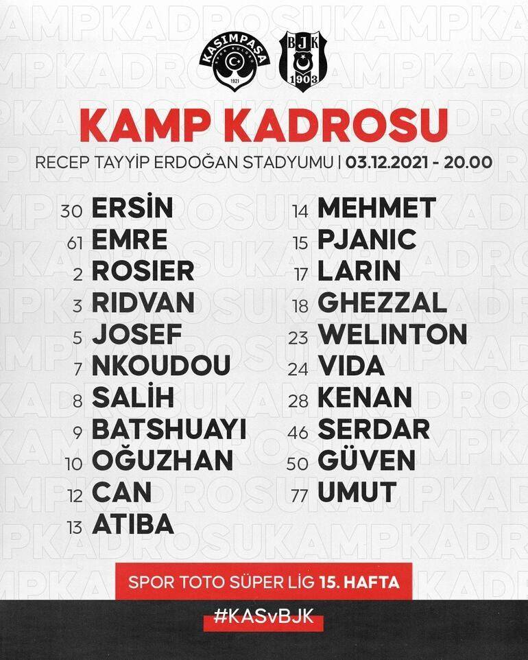 Siyah-beyazlılarda Mert Günok, Alex Teixeira, Montero ve Gökhan Töre kadroda yer almadı. Necip Uysal da cezası sebebiyle forma giyemeyecek.
