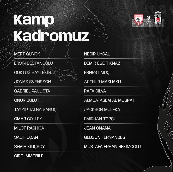 Beşiktaş’ın Samsunspor maçı için kamp kadrosu şöyle: