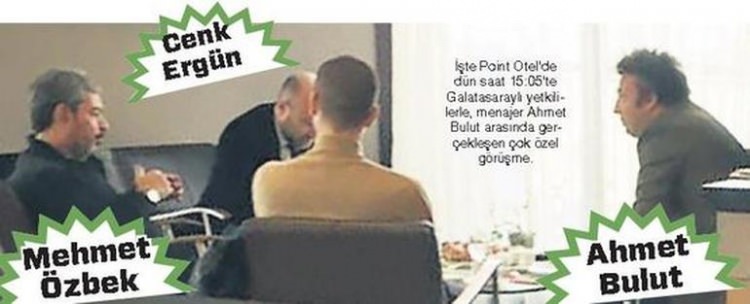 Galatasaray Başkanı Dursun Özbek'in sahibi olduğu Point Otel'de önemli bir zirve gerçekleşti. Galatasaray Futbol Direktörü Cenk Ergün, Dursun Özbek'in kardeşi Mehmet Özbek ve menajer Ahmet Bulut'un yaptığı transfer görüşmesi görüntülendi.