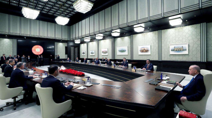Cumhurbaşkanlığı Külliyesi bugün tarihi bir güne daha şahitlik etti. Saat 16.50’de başlayan yılın ilk Kabine Toplantısı’nda, Türkiye’nin 40 yıllık terör belasından tamamen kurtulması ve bölgesel bir güç merkezi olması yolundaki dev adımlar masaya yatırıldı. Başkan Recep Tayyip Erdoğan’ın "Terörsüz Türkiye, terörsüz bölge" vizyonu doğrultusunda, kardeşlik iklimini pekiştirecek stratejiler tek tek ele alınıyor.