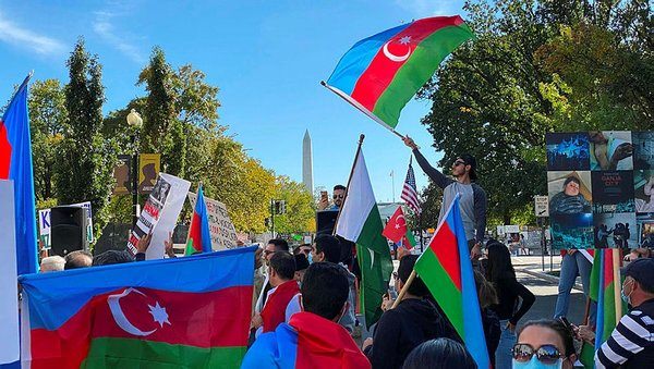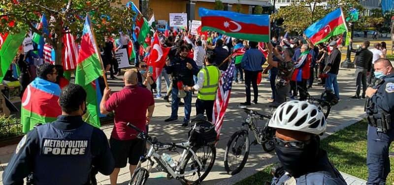 ABD'nin başkenti Washington'da Beyaz Saray önünde toplanan Türkler Ermenistan'ın Azerbaycan topraklarına yönelik saldırılarını protesto etti.