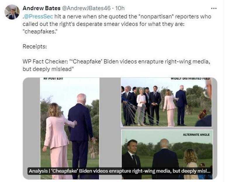 Beyaz Saray Basın Sözcüsü Karine Jean-Pierre dün düzenlenen basın toplantısında gazetecilerin sorularını yanıtladı. Pierre, ABD Başkanı Joe Biden’ın sosyal medyada tartışmalara neden olan ‘kafa karışıklığı’ videolarıyla ilgili olarak, “Bu manipüle edilmiş videolar kötü niyetle yapılıyor ve gerçeği yansıtmıyor” dedi. Videoları ‘ucuz sahte’ olarak nitelendiren Pierre, "Bu size Cumhuriyetçilerin burada ne kadar çaresiz olduğuna dair bilmemiz gereken her şeyi anlatıyor. Başkanın görevdeki performansı hakkında konuşmak yerine, yasama organlarında kazandığı zaferler, ülke genelinde Amerikan halkı için neler yapabileceği hakkında konuşmak yerine, bu deepfake'leri, manipüle edilmiş videoları görüyoruz " ifadelerini kullandı.