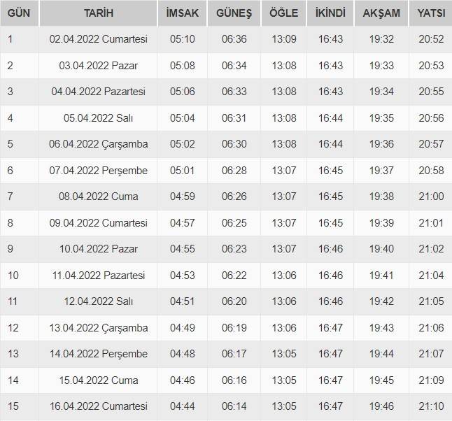 Mübarek ramazan ayı 2 Nisan'da başlayacak. Vatandaşlar yaşadıkları illere ait imsakiyeleri araştırmaya başladı. Peki, imsakiyeler belli oldu mu? Ramazan ayı imsakiyesi yani namaz vakitleri imsak vakti saatleri belli oldu.