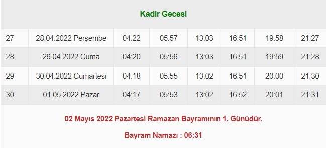 Kadir gecesinin Ramazan ayının 27. gecesinde olduğu (Müslim, Salâtü’l-Müsâfirîn, 179-180) genel kabul görmüş olmakla birlikte, Ramazan’ın son on gününün tek gecelerinde (Müslim, Sıyâm, 207) veya son yedi gecesinde aranması ile ilgili farklı rivayetler de vardır (Müslim, Sıyâm, 205-206). Dolayısıyla Ramazan’ın son gecelerini Kadir gecesiymiş gibi değerlendirmek gerekir.