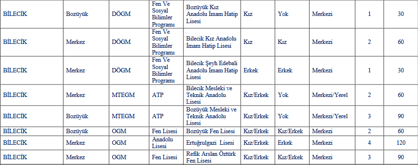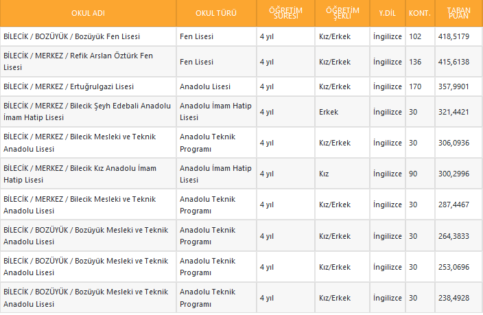 Bilecik liseleri taban puanı 2021 Bilecik liseleri başarı sıralaması |Bilecik liseleri kontenjanları