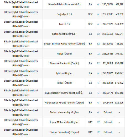 Bilecik Şeyh Edebali Üniversitesi 2021 taban puanları ve yüzdelik dilimleri nelerdir?
