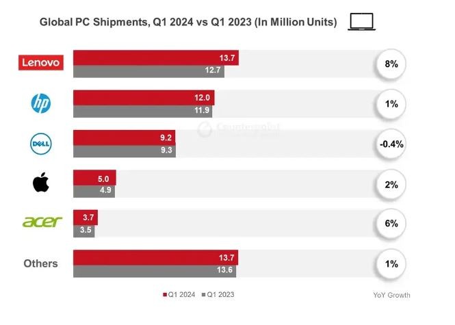 Sektörde global pazarı domine eden marka olarak ise, %24’lük pay ile Lenovo öne çıktı. HP, Dell ve Apple da hemen arkadan geliyor. Listedeki ilk 4 şirketin uzun bir süredir değişmediğini söyleyebiliriz. Fakat Apple yönetiminin özellikle yeni nesil Macbook serileri ile beraber bu alandaki satış oranlarını artırmak istediği konuşuluyor. Şirketin başarılı olup olamayacağını ise önümüzdeki dönemde göreceğiz.