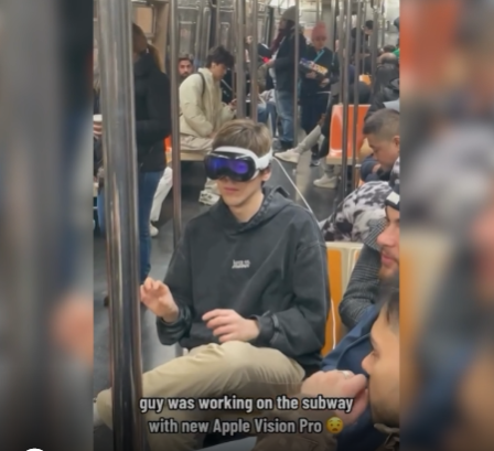 Apple markasının çıkardığı Vision Pro, hem sanal hem de artırılmış gerçeklik sunan, çift ekranlı, yüksek çözünürlüklü, kumaş ve cam dokunuşlu bir gözlük olarak tanıtılıyor. Vision Pro ile hem Apple TV+ gibi platformlardan film ve dizi izlenebiliyor, hem 3D oyunlar oynanabiliyor, hem de iş ve eğitim amaçlı uygulamalar kullanılabiliyor. Bu üründen satın alan bir genç, yurt dışında bir metroda kullanmaya başlayınca herkes şaşırdı.
