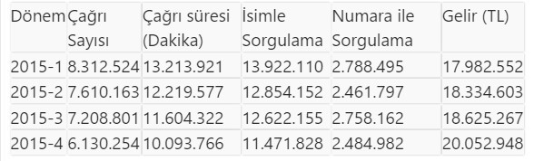 Bilgi Teknolojileri ve İletişim Kurumu (BTK) verilerinden yaptığı hesaplamalara göre, rehberlik hizmeti veren 9 işletmeci, 2015'te toplam 74,9 milyon lira gelir elde etti. Bilinmeyen numaralara harcanan para, 2014 yılında 73,7 milyon lira olarak gerçekleşmişti.