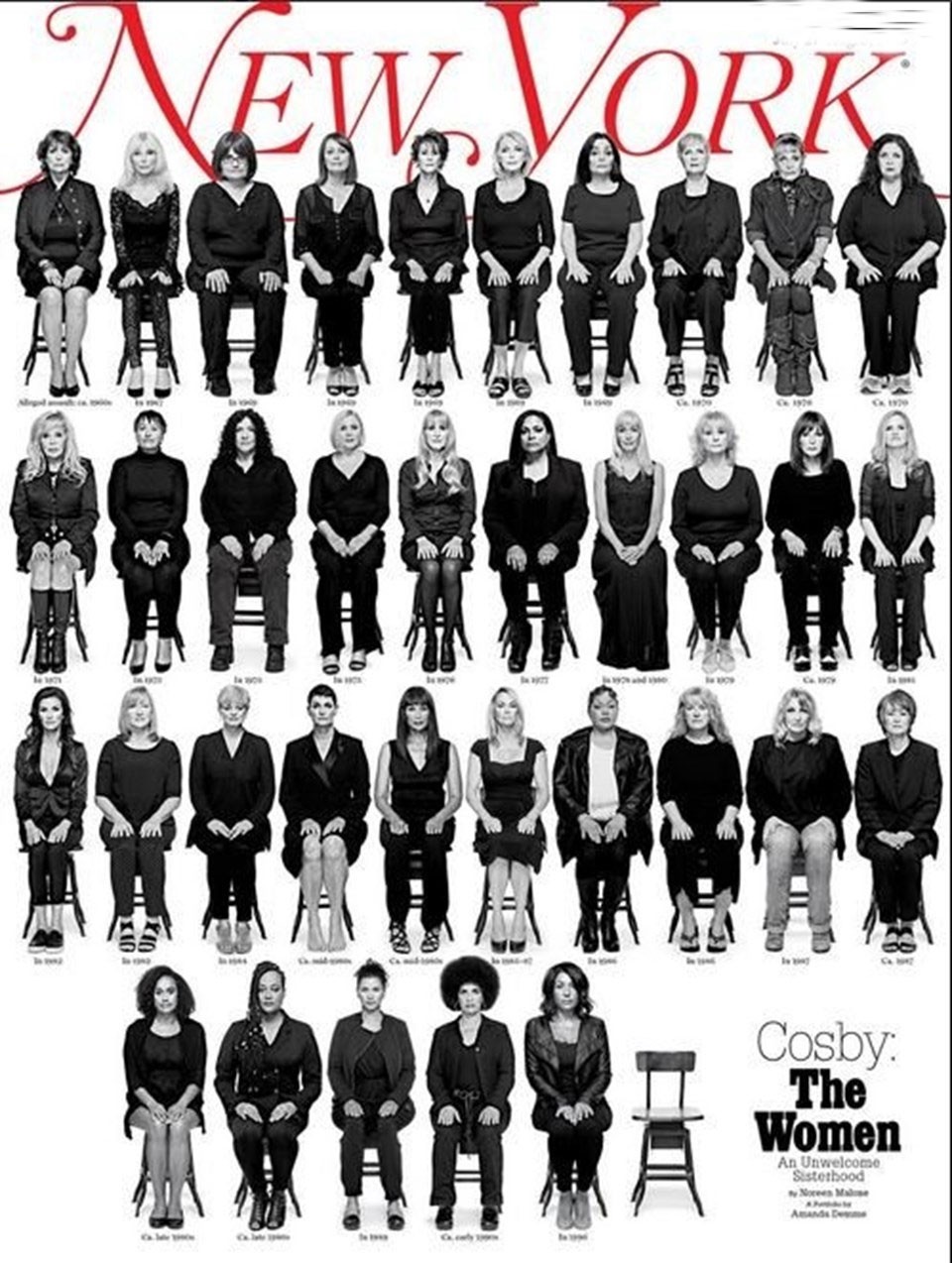 81 yaşındaki ABD'li ünlü komedyenin başı son günlerde ortaya çıkan taciz iddialarıyla dertte. Cosby tarafından tacize uğradığını iddia eden ve şikayette bulunan 35 kadın ise New York Magazine'in kapak konusu olmuştu. İddialara göre Cosby birlikte olmak istediği kadınlara uyuşturucu bir ilaç verip taciz etmişti.