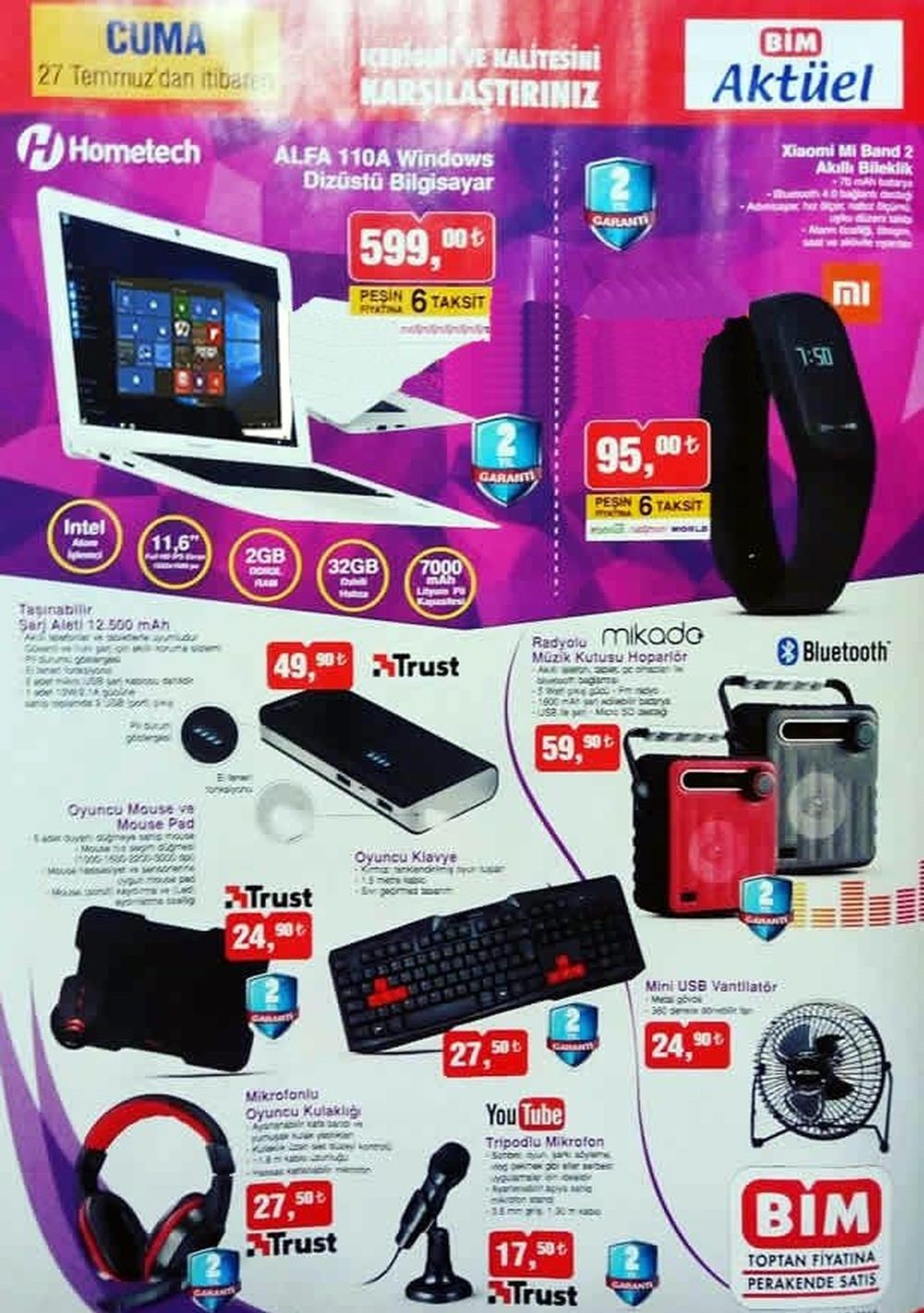 BİM 27 TEMMUZ İNDİRİM ÜRÜNLERİ LİSTESİNDE ŞUNLAR VARDI