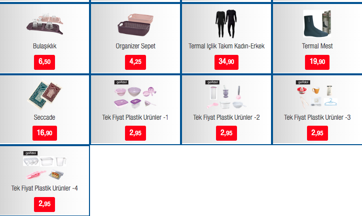 Tek Fiyat Plastik Ürünler -2 fiyatı 2.95 TL