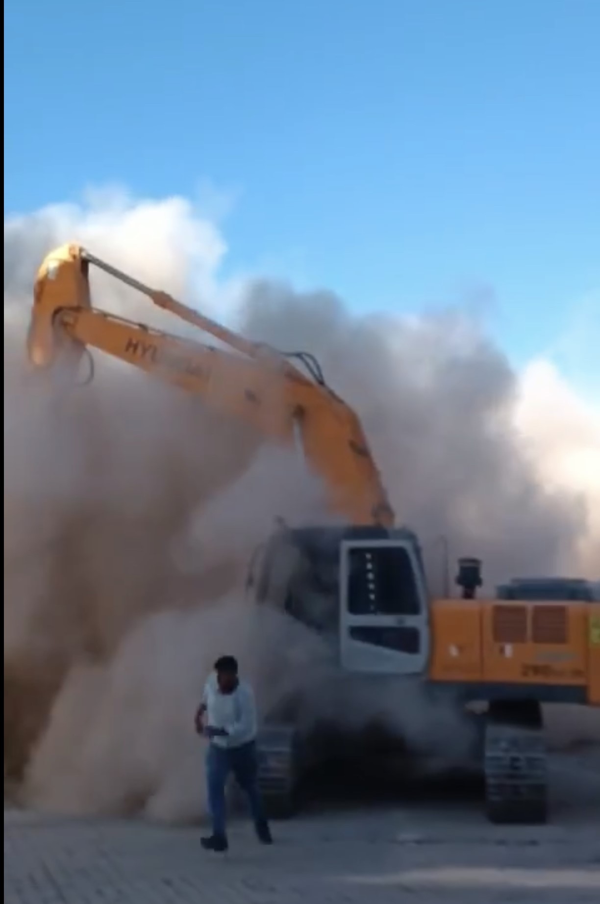 Ortalık toz bulutu ile kaplanırken, operatör kepçeyi bırakarak kaçtı. O anlar ise cep telefonu kamerası ile kaydedildi.