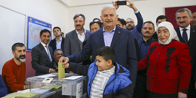 Bir gazetecinin "Kapıdan girerken küçük bir çocuk yanınıza yaklaşarak, oy istedi." şeklindeki sözleri üzerine Yıldırım, "Gayet doğal bir şey. Bizimkiler de dedesine oy istiyorlar." dedi.