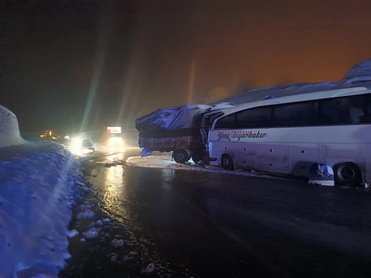 Bingöl’de buzlanma nedeniyle kontrolden çıkan ve yolu kapatan tıra, arkadan gelen yolcu otobüsü çarptı. 38 yolcunun bulunduğu otobüste 3 kişi yaralanırken, kaza sonrası Bingöl-Erzurum kara yolunda can pazarı yaşandı.
