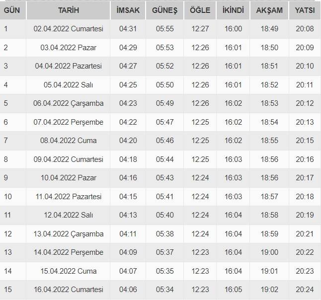 Bingöl imsak vakitleri sahur iftar | 2022 imsakiye Bingöl