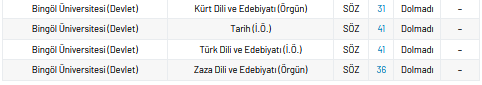 Bingöl Üniversitesi 4 yıllık taban puanları 2021, yüzdelik dilimleri ve kontenjan sayıları kaçtır?