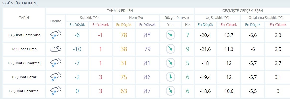 Bingöl’ün 5 günlük hava tahmin raporu: