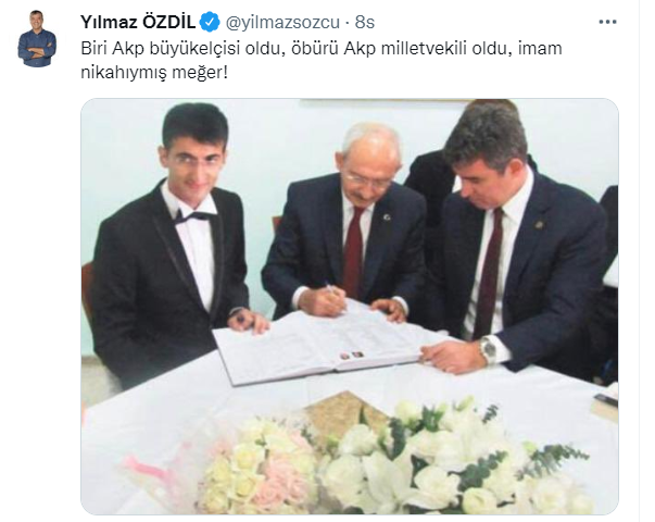 Mehmet Ali Çelebi ile birlikte Lefkoşe'ye büyükelçi olarak atanan Metin Feyzioğlu'nu da hedef alan Özdil, Çelebi-Kılıçdaroğlu ve Feyzioğlu'nun fotoğraf karesini paylaşarak laubali ifadeler kullandı.