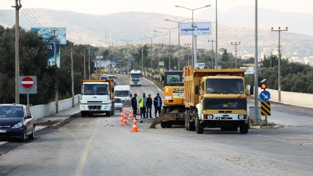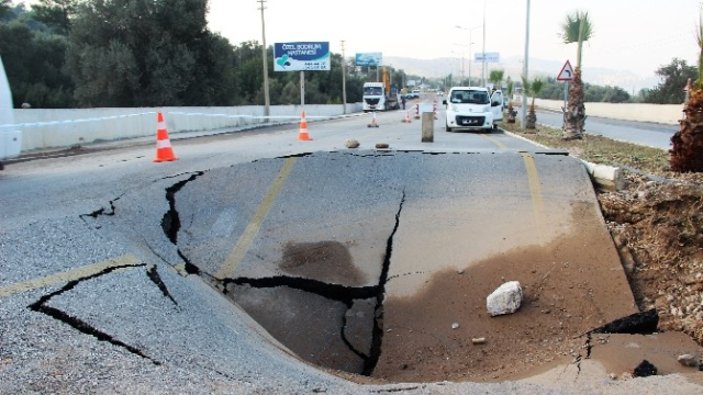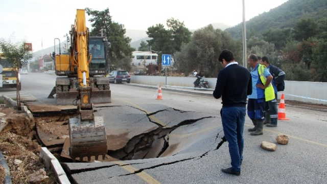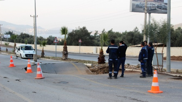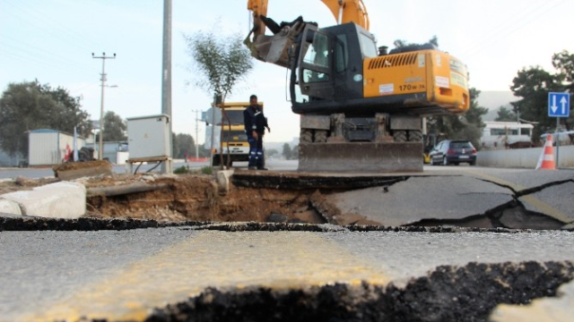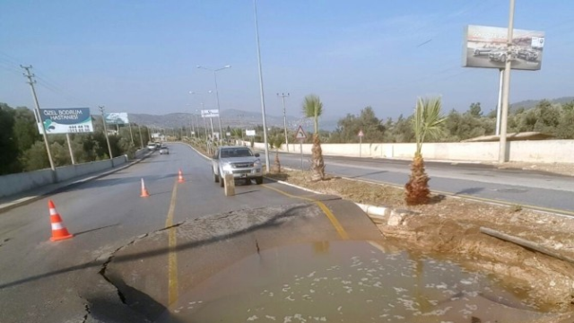 Muğla'nın Bodrum ilçesinde Devlet Su İşleri'ne ait içme suyu isale hattında meydana gelen patlama sonucu, karayolunda göçük oluştu.