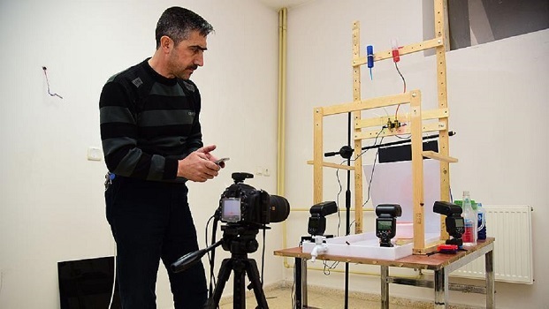 Evine kurduğu düzenekte damlaların düşüş hızını hesaplayan, fotoğraf makinesinin deklanşörünü cep telefonuna yüklediği bir program ile çalıştıran Akarsu, en güzel kareyi çekebilmek için bazen saatlerce bekliyor.