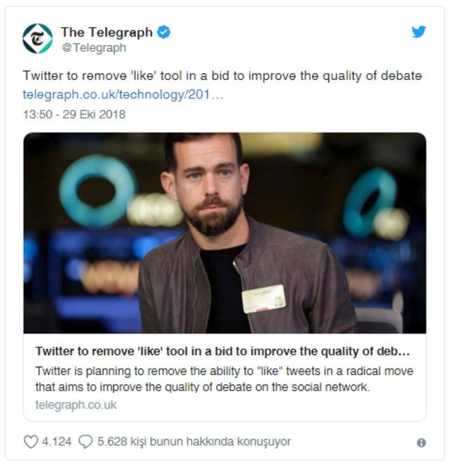 Öte yandan Twitter İletişim Ekibi'nden yapılan açıklamada şu ifadeler kullanıldı: "Bir süredir söylediğimiz gibi, ‘Beğen'düğmesi dahil sağlıklı bir diyaloğu teşvik etmeyi sağlamak için hizmetimizle ilgili olan her şeyi gözden geçiriyoruz. Daha çalışmanın ilk aşamalarındayız ve şu anda paylaşma planımız yok."