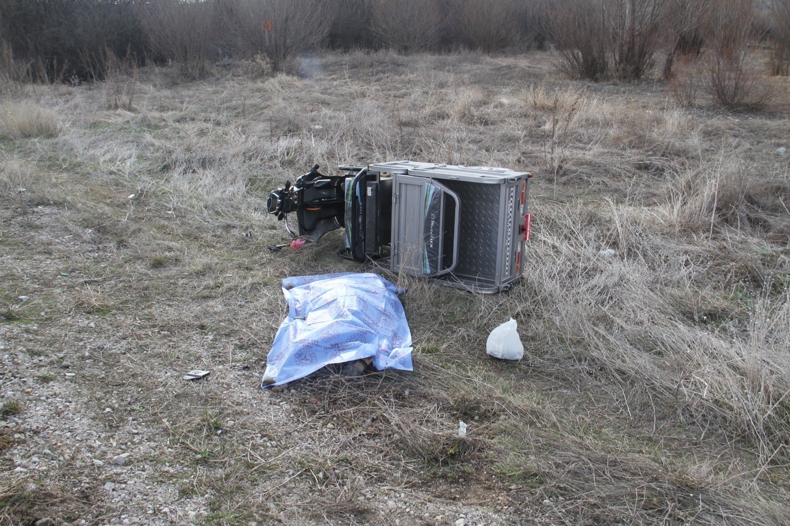 Sağlık ekiplerinin yaptığı kontrolde ters dönen üç tekerlekli motosikletin altında kalan sürücünün hayatını kaybettiği belirlendi.