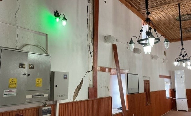 Kahramanmaraş depreminden sonra camideki yarıklar biraz daha açılmış