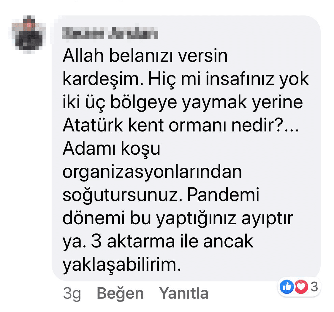 Koronavirüs sürecinde Atatürk Kent Ormanı'nın ulaşım açısından sıkıntılı bir olduğunu da dile getiren vatandaşlar, "Ödül törenini de Aydos Ormanı'nda yapın bari" diyerek İBB'yi ti'ye aldı.
