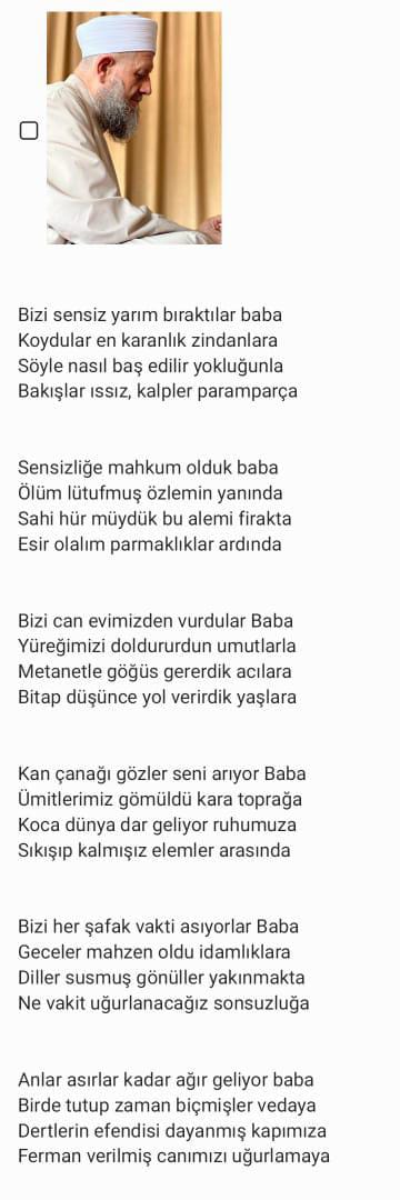 İşte Gümüşel'in kızının, kız kardeşi H.K.G.'nin iddiaları sebebi ile hapse gönderilen babası için yazdığı o şiir: