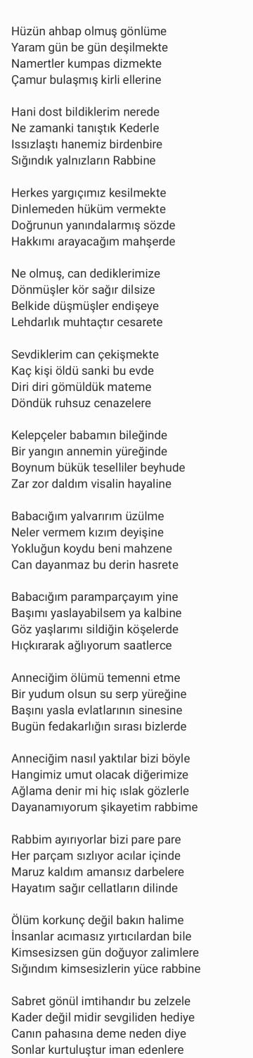 Haklarında başlatılan linç kampanyası sebebi ile zor günler yaşayan Gümüşel ailesinden yüreklere dokunan bir şiir geldi.